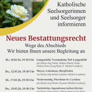 Wahlbekanntmachung Pfarrei: Mayen, St. Lukas Liebe Pfarrangehörige, in unserer Pfarrei wird der Verwaltungsrat am 8. März gewählt. Wir laden alle Gemeindemitglieder herzlich ein, sich an diesem wichtigen Prozess zu beteiligen und geeignete Kandidaten…